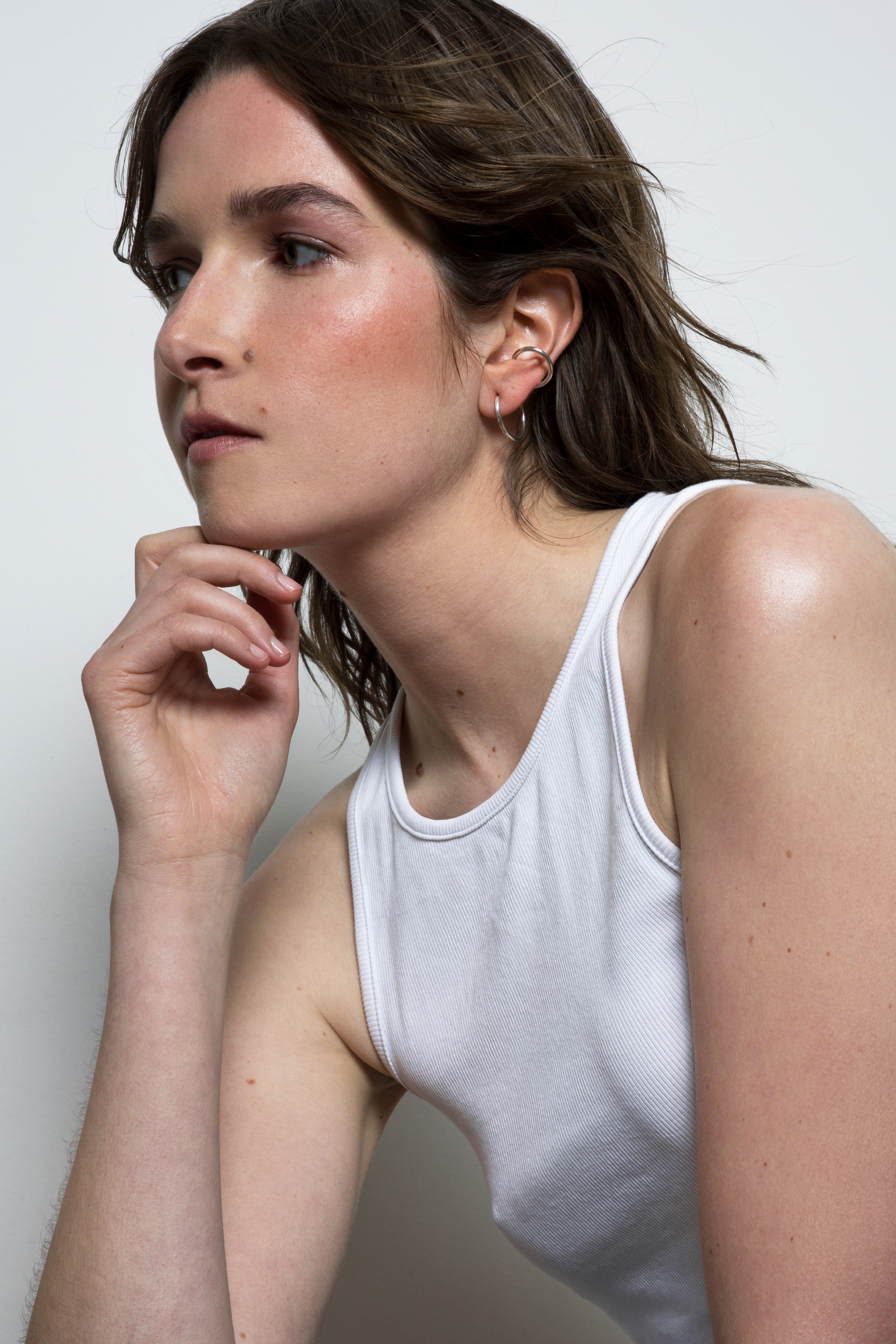 winding hoop earring with attached ear cuff detail