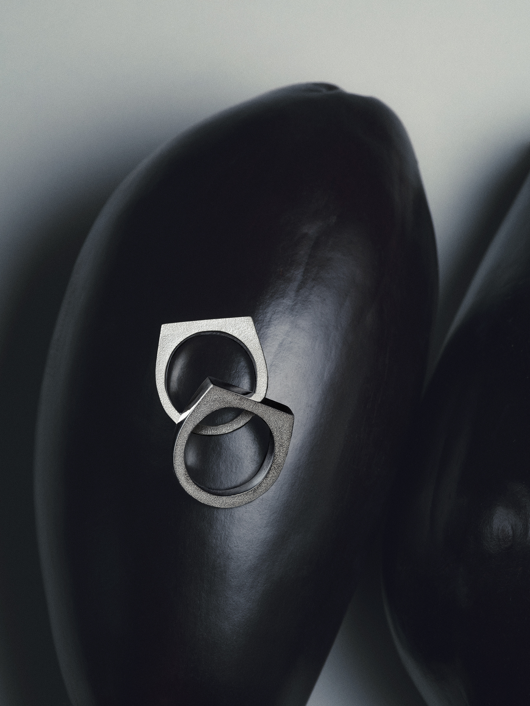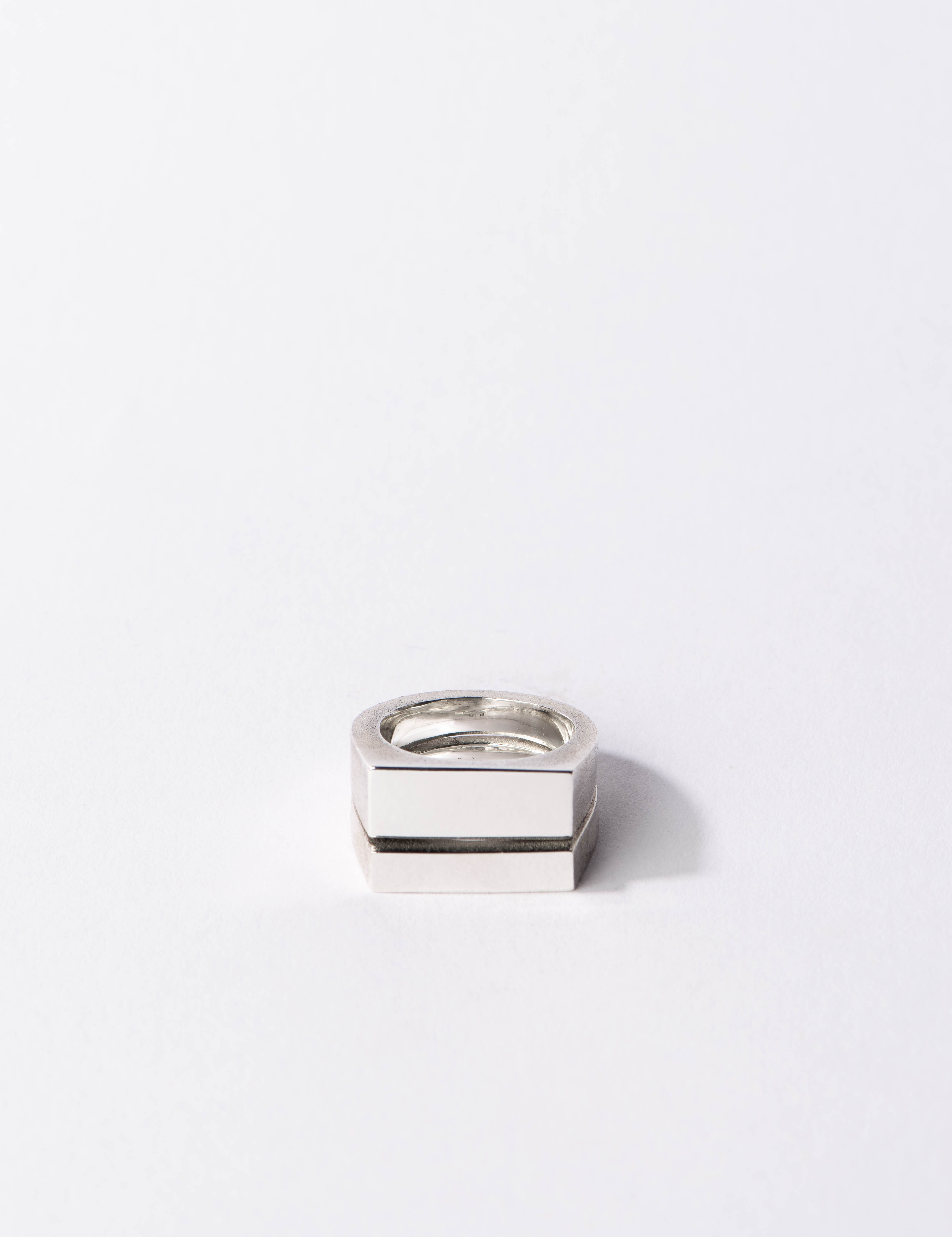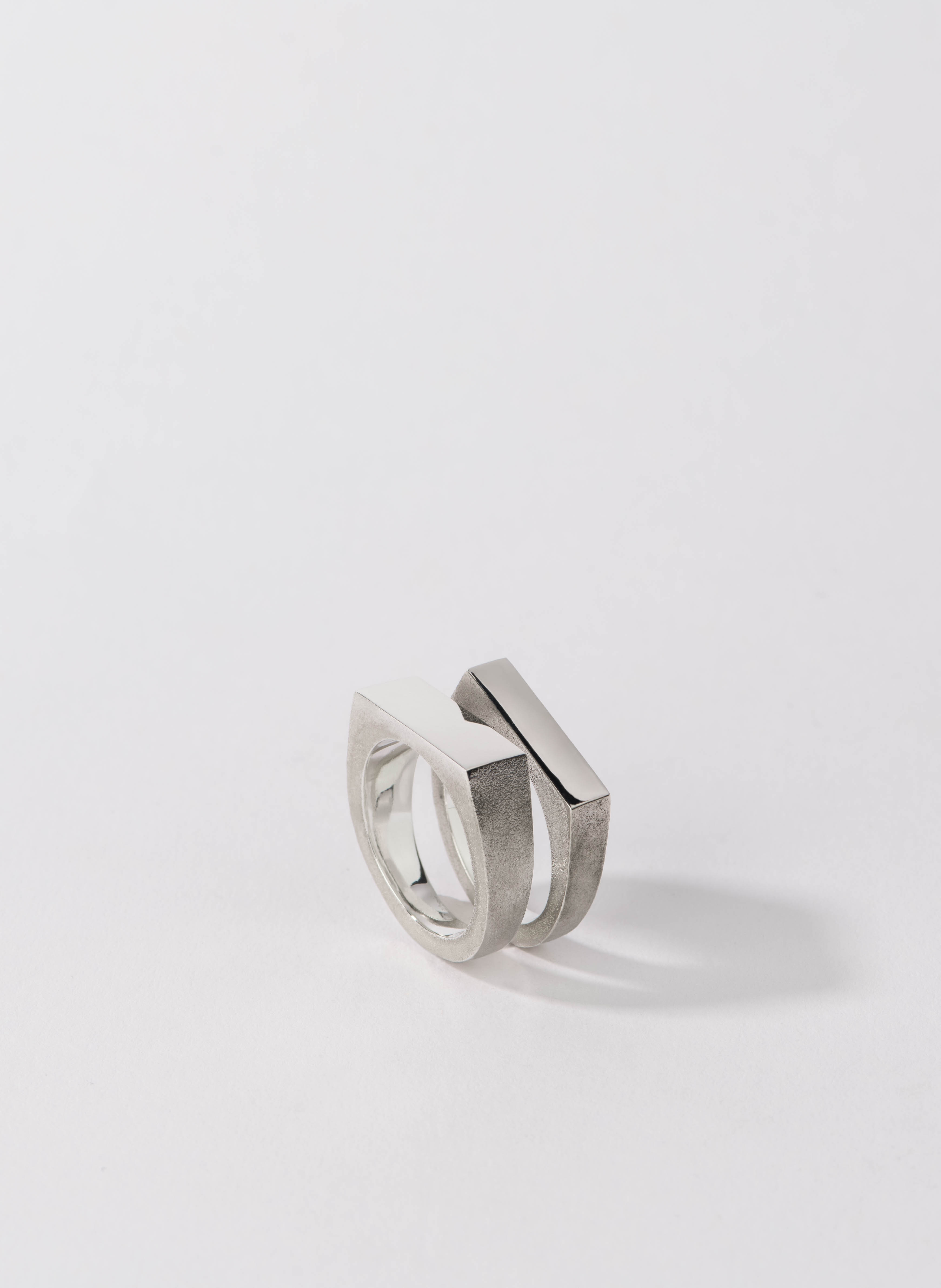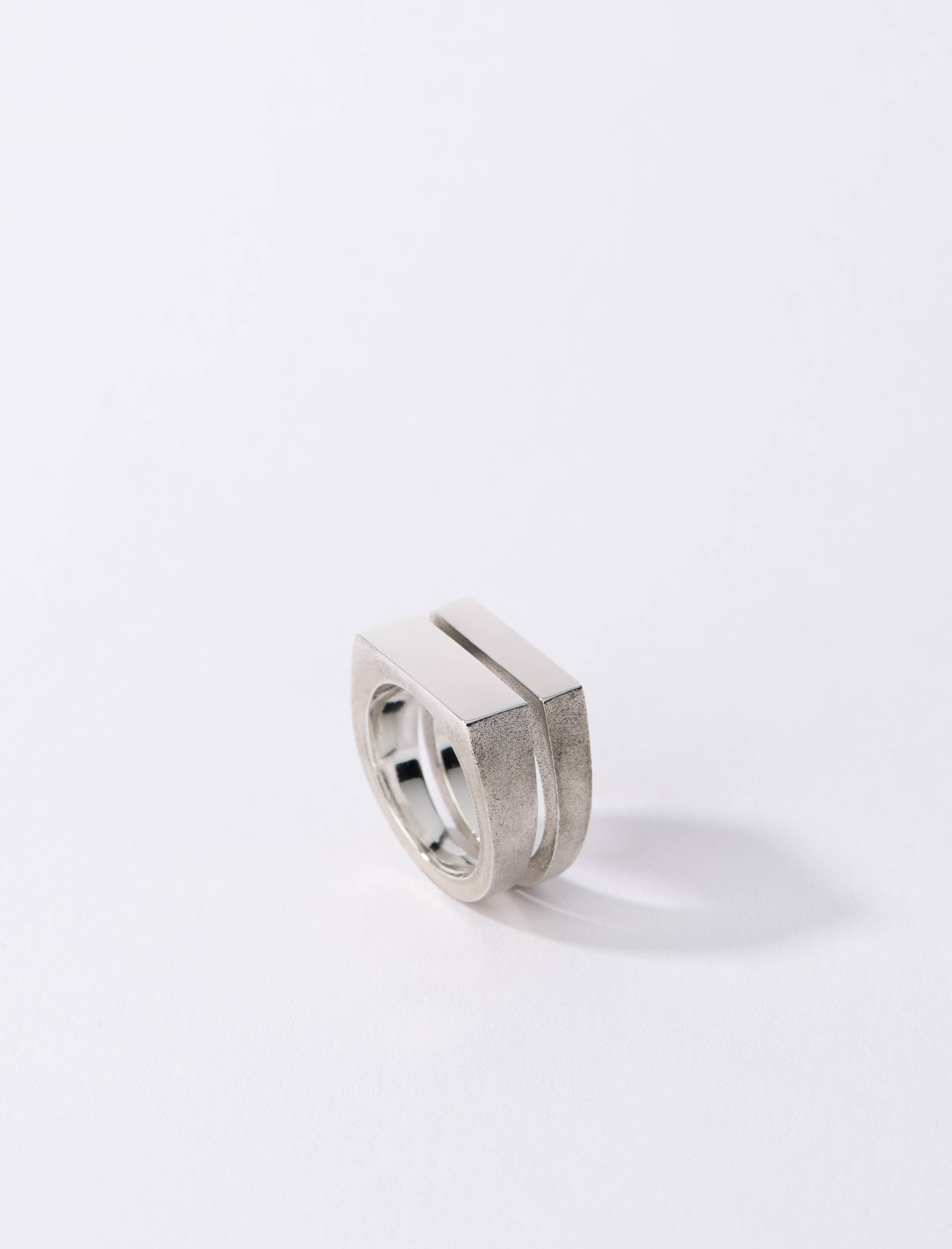 a classic signet ring split asymmetrical with textured ring bands